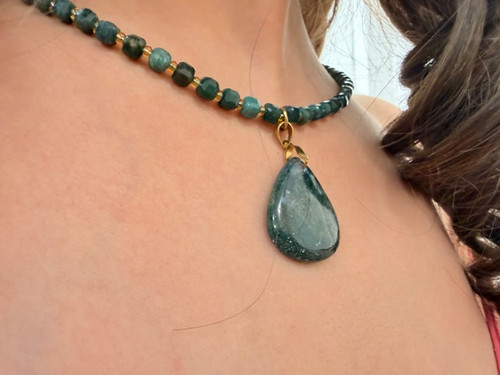 گردنبند تراش باکسی جواهری عقیق خزه ای درجه vip