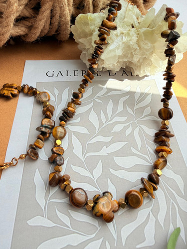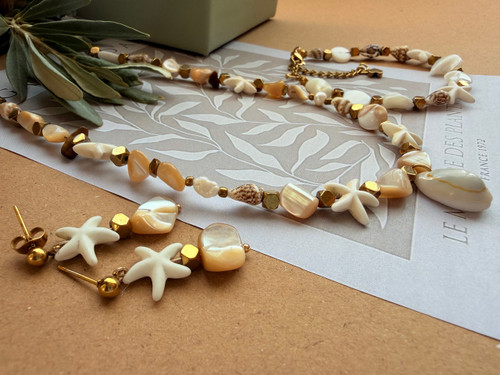 نیم ست صدف طبیعی کاراملی رنگ وصدف تراش ستاره وسنگ چشم ببر