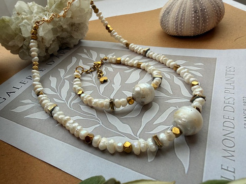 نیم ست گردنبند دستبند گوشواره مروارید اصل باروک درجه یک صدف تراش ونکلیف