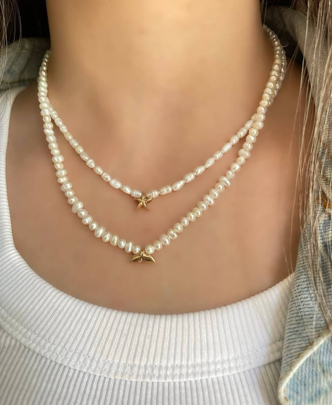 گردنبند مروارید اصل با یراق استیل رنگثابت، ترکیبی از ظرافت طبیعی و دوام بالا است. درخشش مروارید، زیبایی منحصربهفرد و جلوهای شیک به استایل روزمره و مهمانیهای شما میبخشد. این گردنبند، هدیهای خاص و ماندگار برای عزیزانتان است.