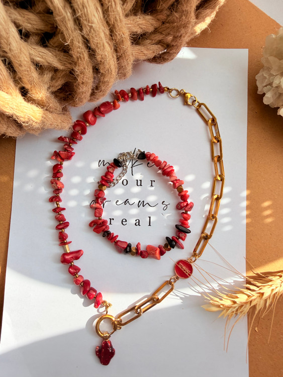 Coral gemstone (سنگ مرجان) در واقع از اسکلت آهکی موجودات دریایی به نام مرجان تشکیل میشود. این سنگ طبیعی در رنگهای متنوعی مانند قرمز، صورتی، نارنجی و سفید یافت میشود که نوع قرمز آن محبوبیت بیشتری در ساخت گردنبند و دستبند دارد.