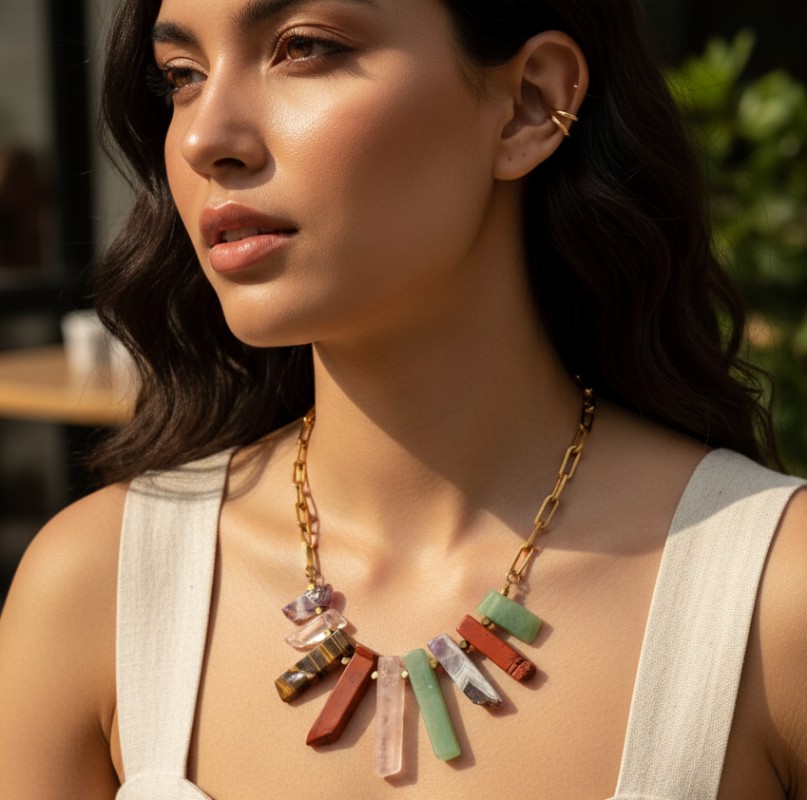 گردبند 7چاکرا سرخپوستی یراق و رنجیر استیل بهترین کیفیت رنگ ثابت