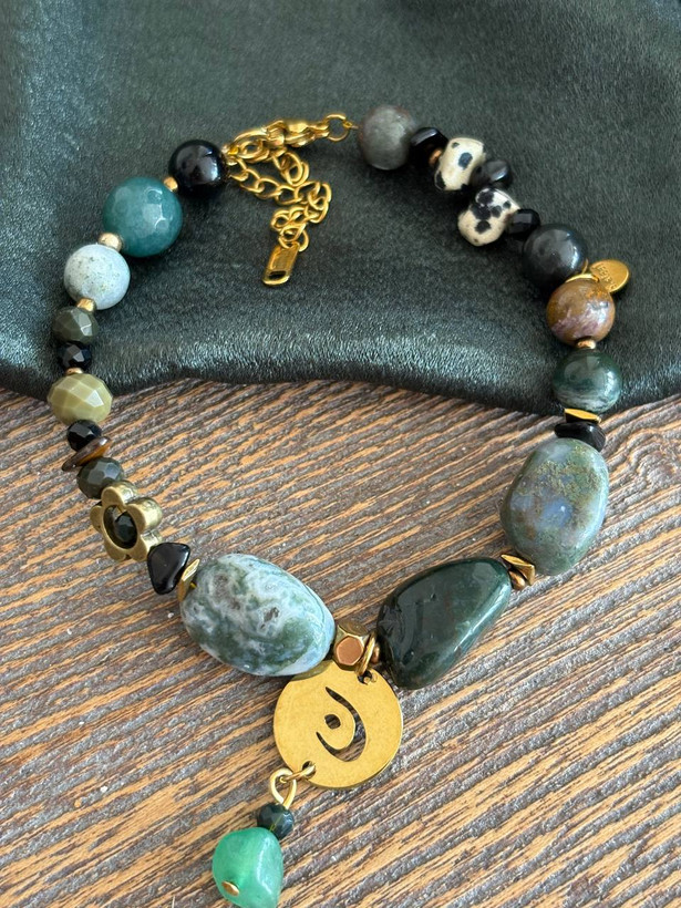 این گردنبند با سنگ طبیعی عقیق خزهای و طراحی کاملاً دستساز ساخته شده و برای بانوانی که به دنبال اصالت و سادگی خاص هستند، انتخابی عالی است.
