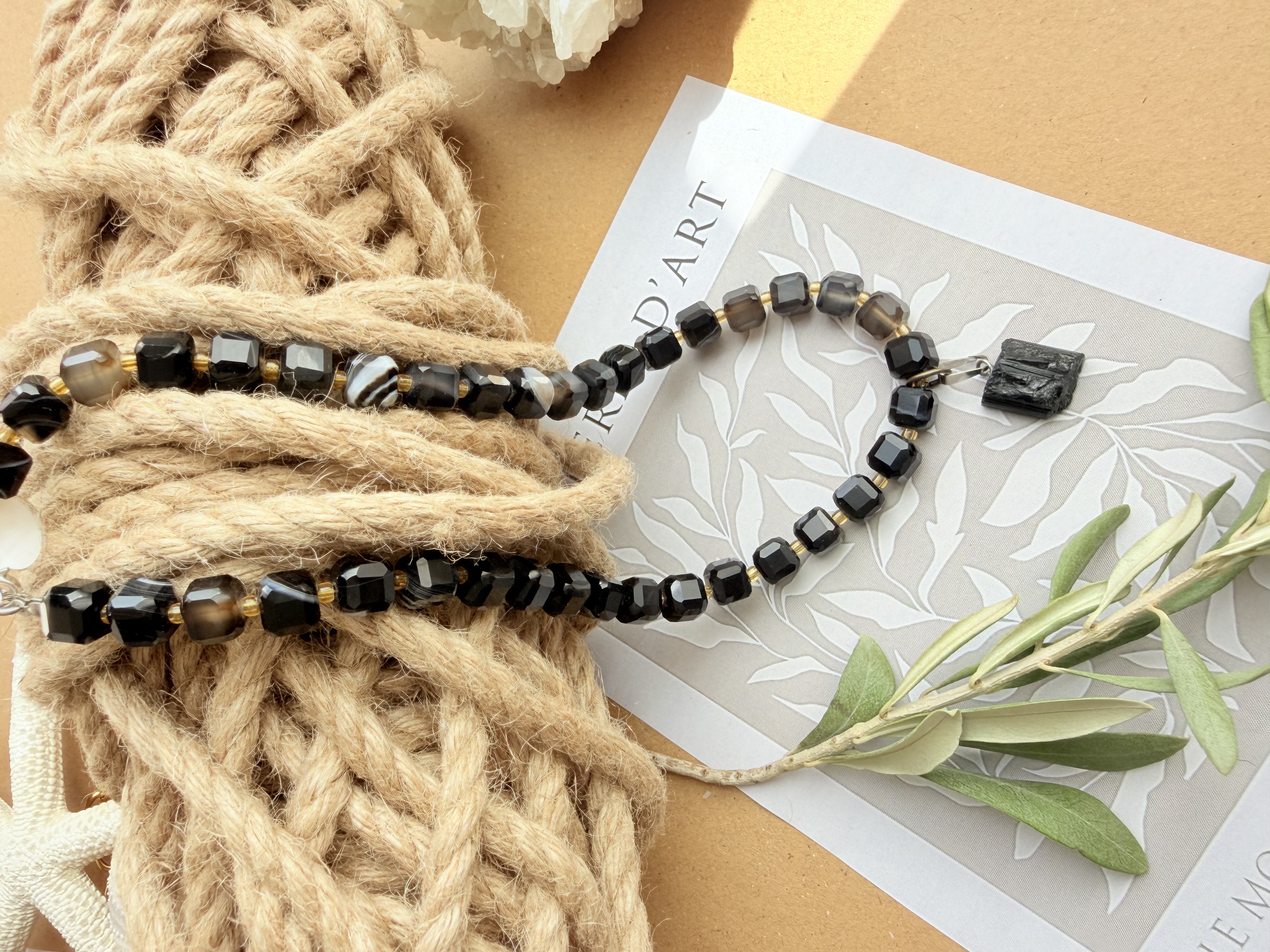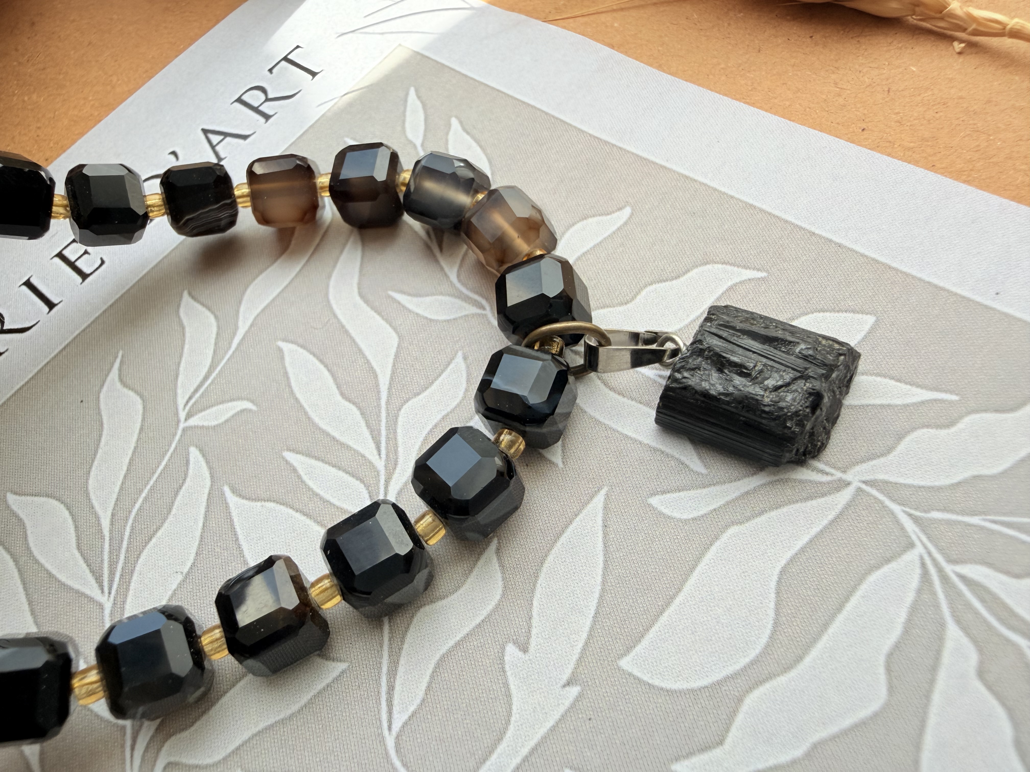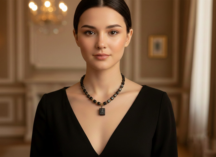 گردنبند عقیق سلیمانی درجه تراش باکسی تراش جواهری درجه یک وپلاک تورمالین