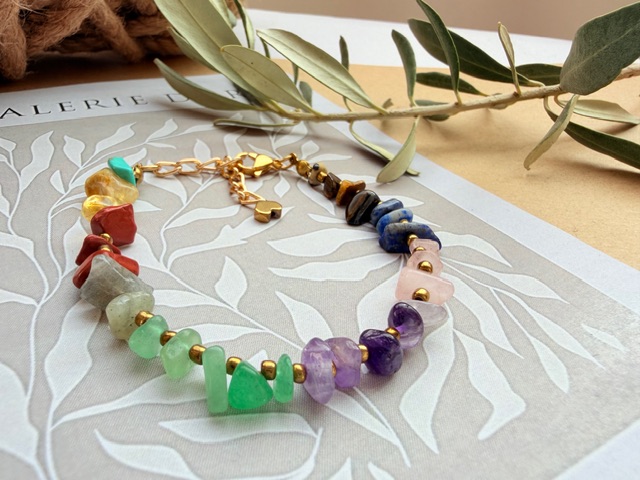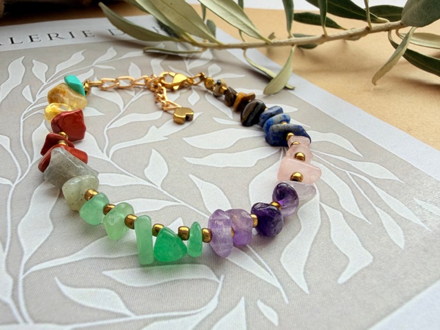 دستبند هفت چاکرا چیپسی قفل وبست درجه ۱ باضمانت ۱۲ سنگ پرانرژی
