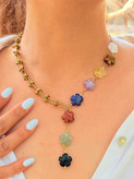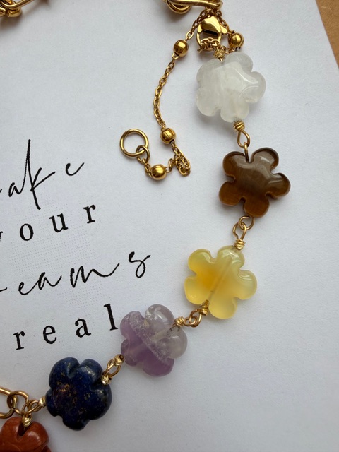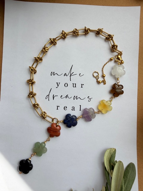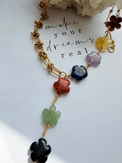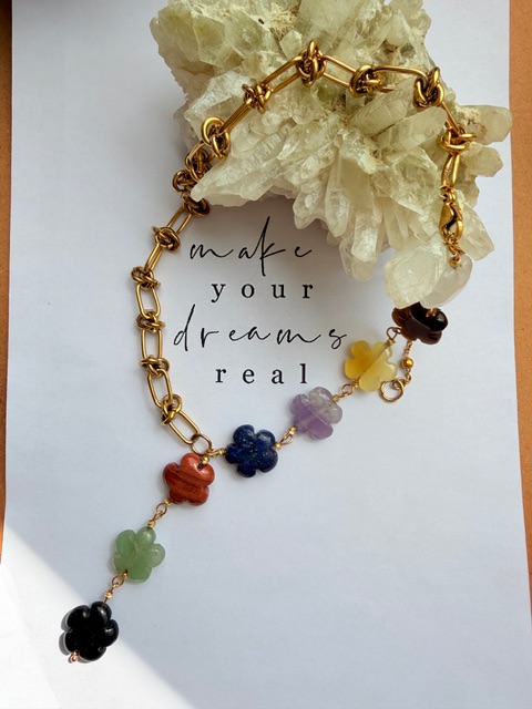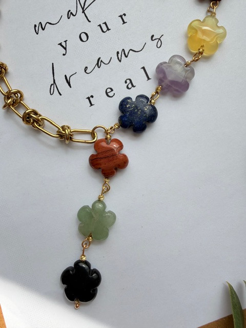 سنگ هفت چاکرا تراش گل باکیفیت شامل هفت سنگ طبیعی هر چاکرا است: چاکرای ریشه (قرمز)، چاکرای خاجی (نارنجی)، چاکرای شبکه خورشیدی (زرد)، چاکرای قلب (سبز)، چاکرای گلو (آبی)، چاکرای چشمی (نیلی) و چاکرای تاج (بنفش). این ترکیب رنگی زیبا و متعادل، انرژی بدن و ذهن را تقویت میکند. طراحی گلمانند و راکش درخشان، جلوهای خاص به گردنبند، دستبند یا انگشتر شما میبخشد و هدیهای انرژیبخش و الهامبخش برای خودتان یا عزیزانتان است.
