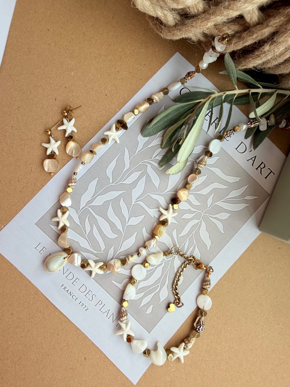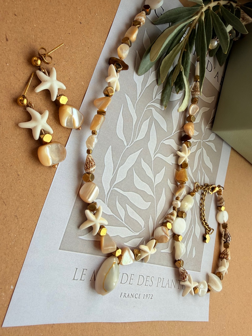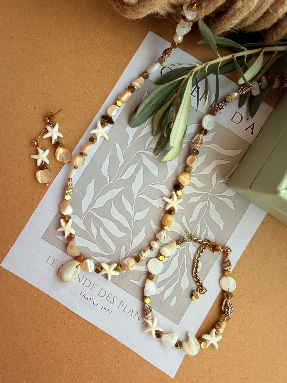 🐚نیم ست فوق العاده خاص وجذاب دستساز شده با بهترین متریال وصدف کاراملی درجه یک وصدف تراش ستاره،ترکیب اون با بین کاری حدید که ابکاری طلا شدن رنگ ثابتن وانرژی دارن ترکیبی بینظیر ساخته شده🐚🌿