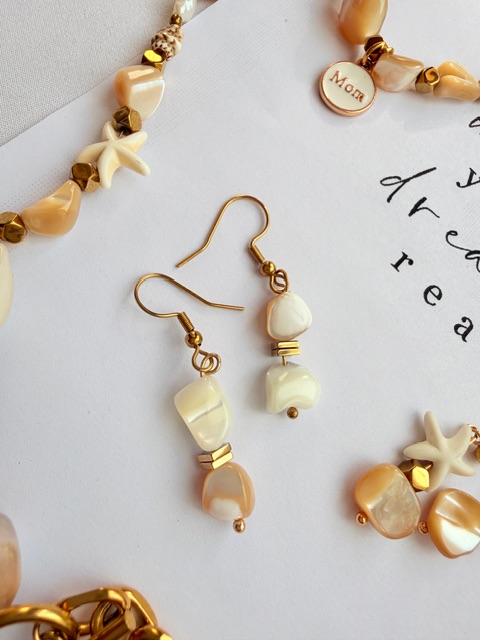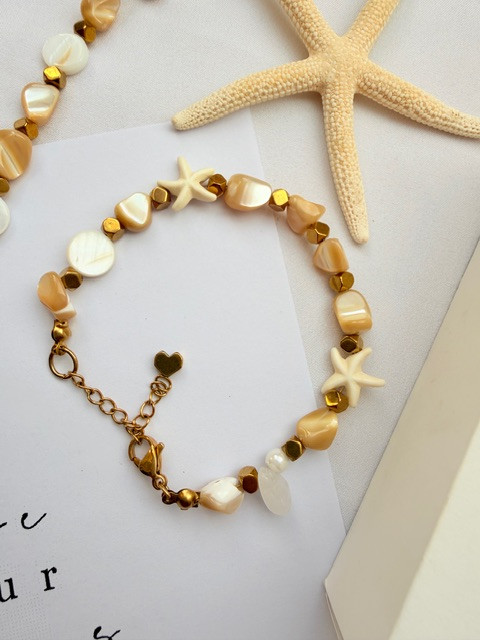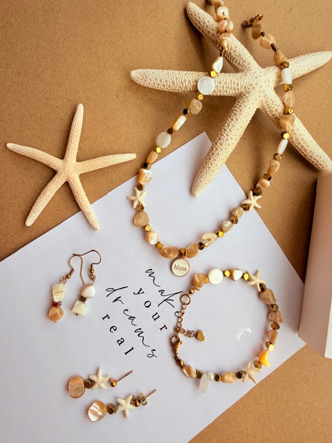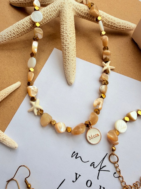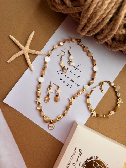 ✅🐚نیم ست صدفی مخصوص استایل های تابستونی کاراملی رنگ فوق العاده جذاب
