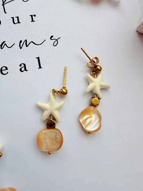 🐚نیم ست فوق العاده خاص وجذاب دستساز شده با بهترین متریال وصدف کاراملی درجه یک وصدف تراش ستاره،ترکیب اون با بین کاری حدید که ابکاری طلا شدن رنگ ثابتن وانرژی دارن ترکیبی بینظیر ساخته شده🐚🌿