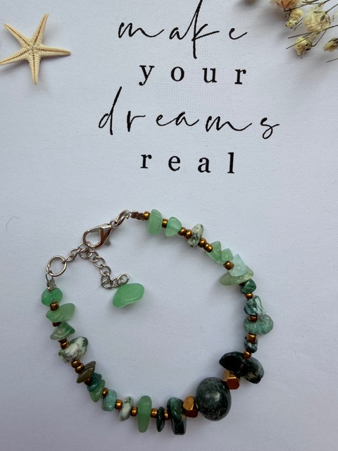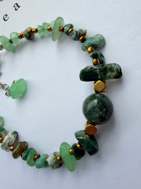 دستبند شانس سنگ اونتورین و عقیق خزه ای فوق العاده چشم نواز و ارامش بخش