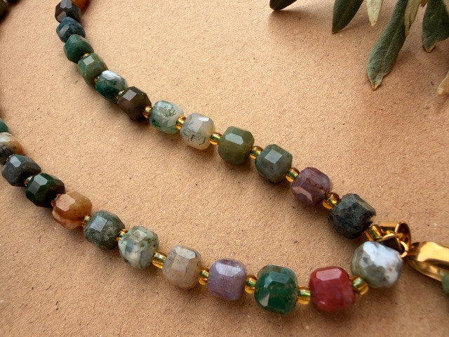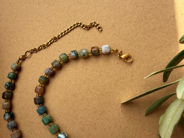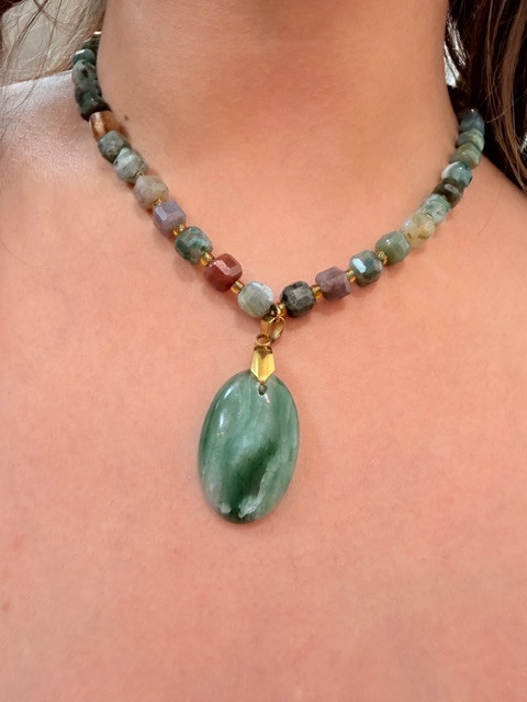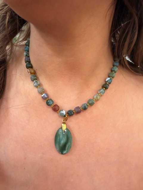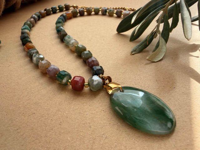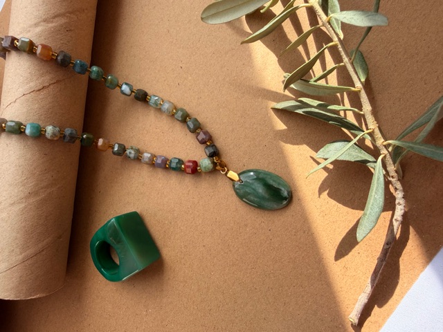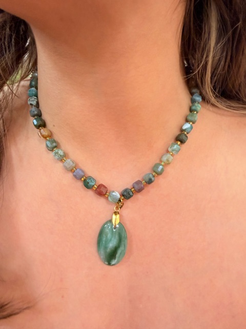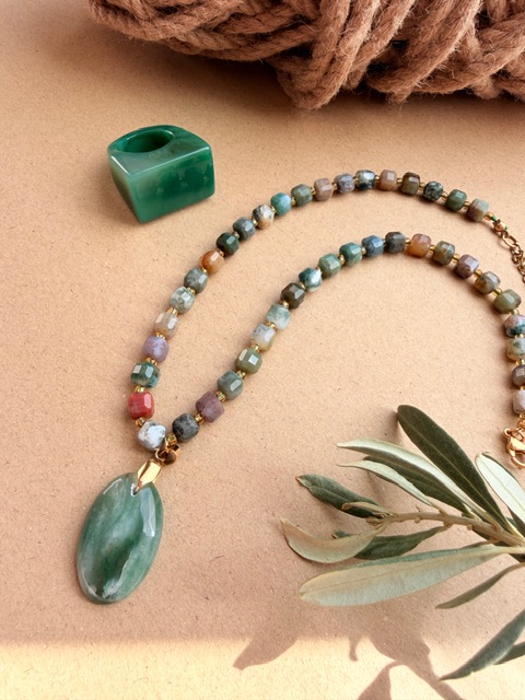 گردنبند تراش باکسی جواهری عقیق خزه ای درجه vip