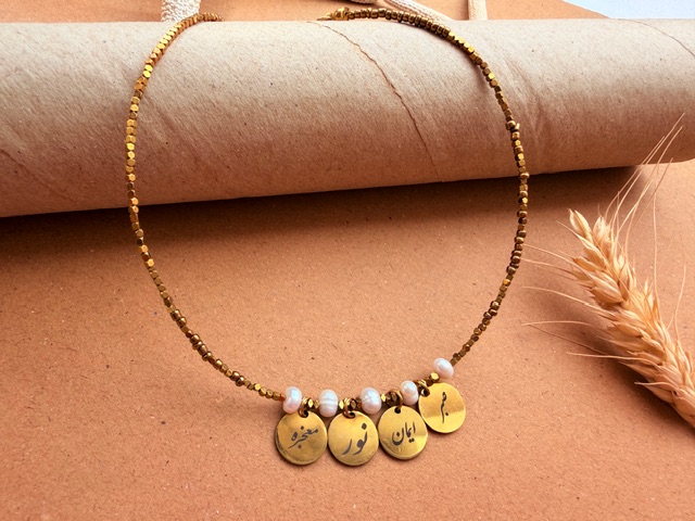گردنبند تمام سنگ حدید همراه بامروارید اصل وپلاک طراحی شده صبر ،ایمان ،نور معجزه،تمامی حکاکی ها کیفیت بالا ورنگ ثابت هستن زنجیر تمام حدید ابکاری طلا هستن انرژی دارن ورنگ ثابتن