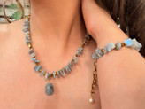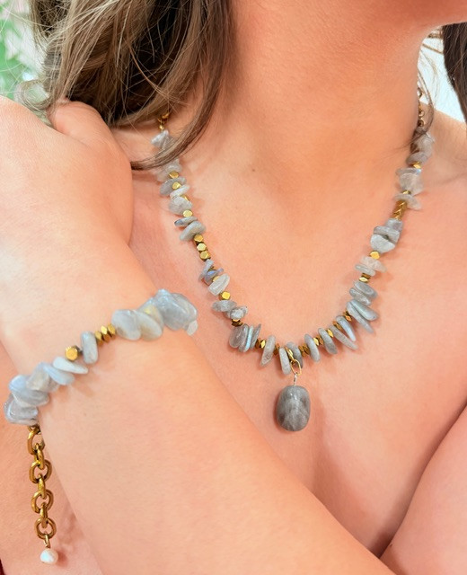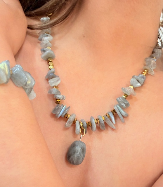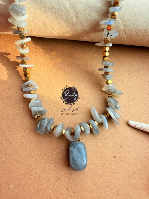 نیم ست درجه یک سنگ لابرادوریت تراش اسلایسی ومدال لابرادوریت واویز مروارید اصل