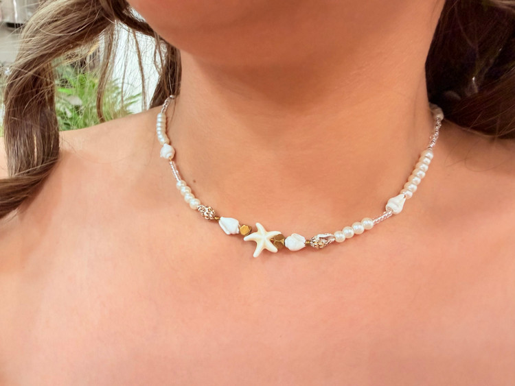 گردنبند منجوق و صدف گوش ماهی و صدف ستاره و سنگ حدید