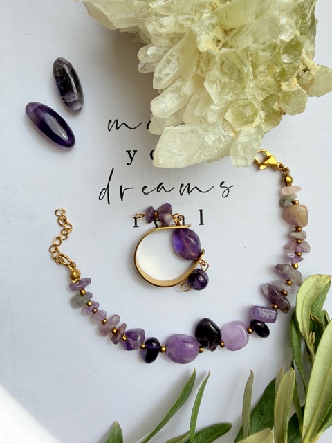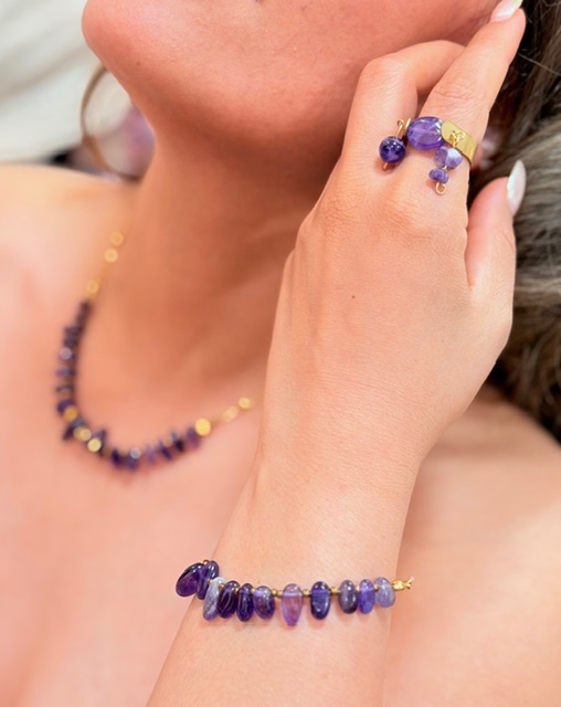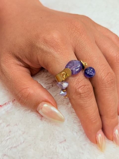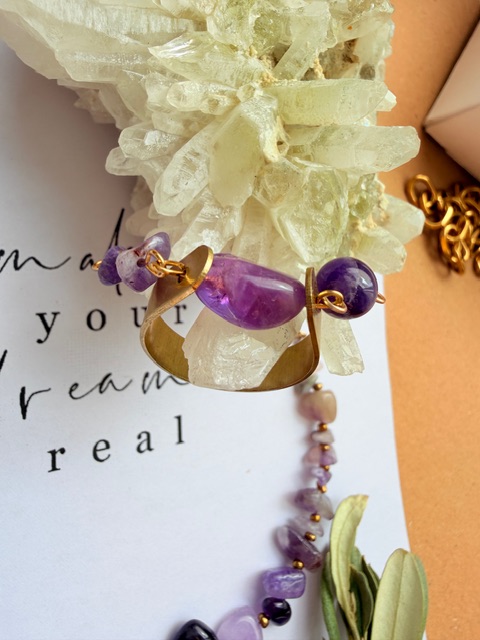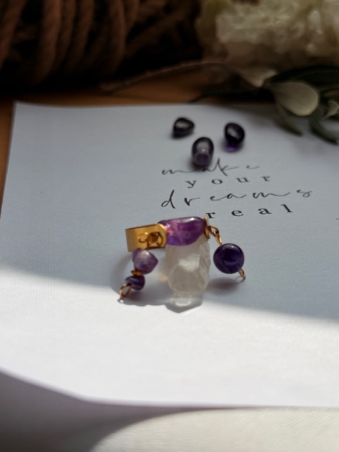 انگشتر سنگ امیتیست دست ساز رکاب برنجی کیفیت بالا